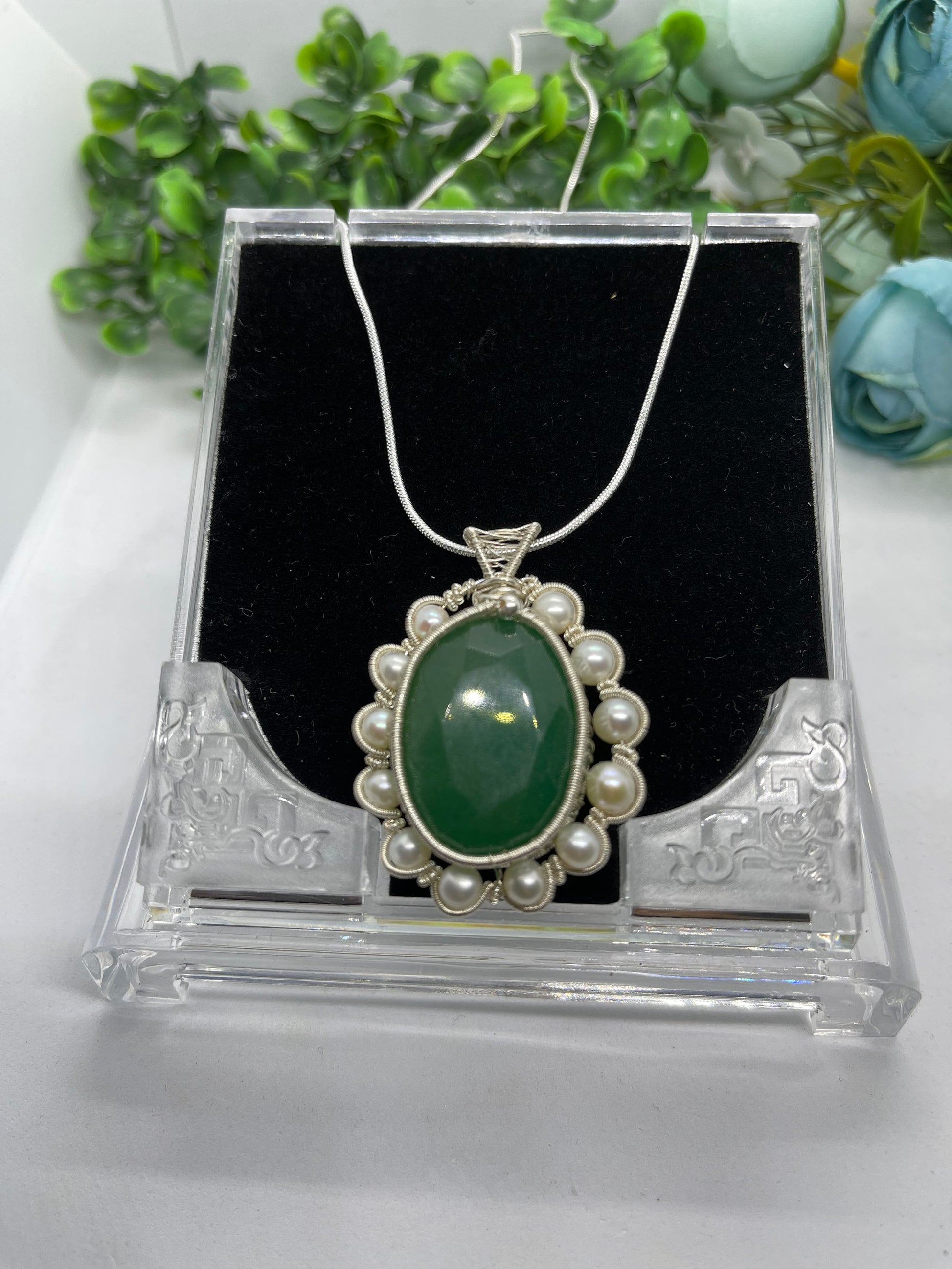 107ct Natural emerald pendant, two side wearing, Sterling silver pendant Seed pearls, antique, handmade, Sterling silver, Pendant, Gift
