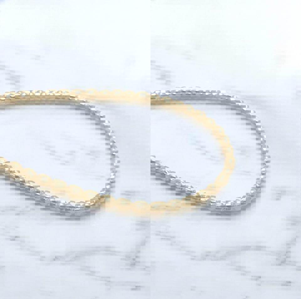 Very nice 4mm ringed oval Freshwater Pearls nucleus-free freshwater pearl strand with 18K gold clasp.