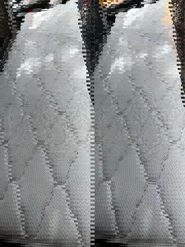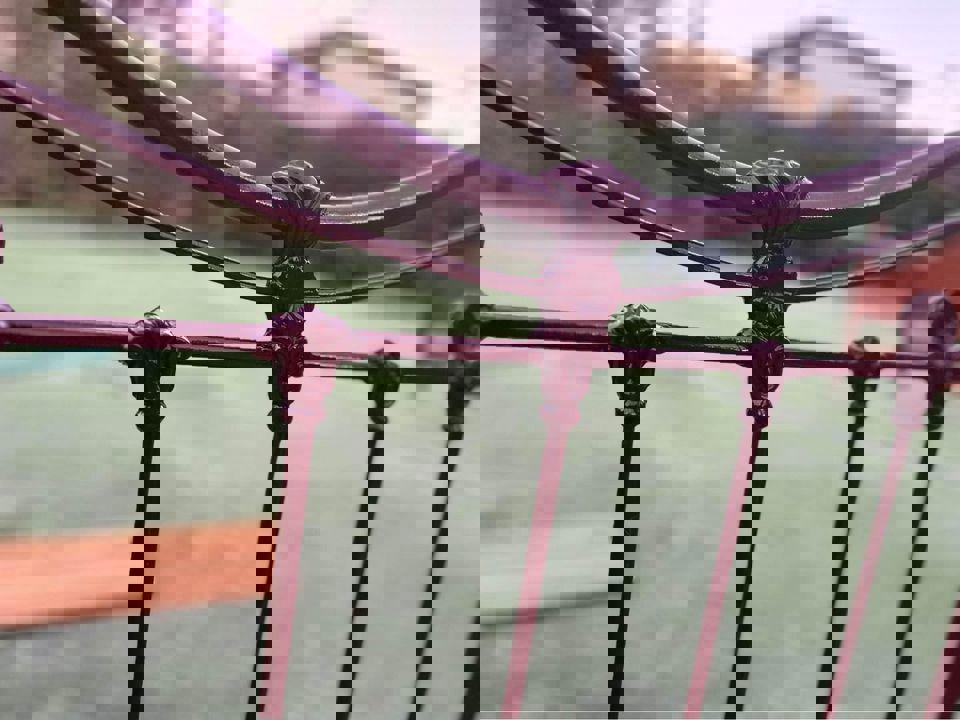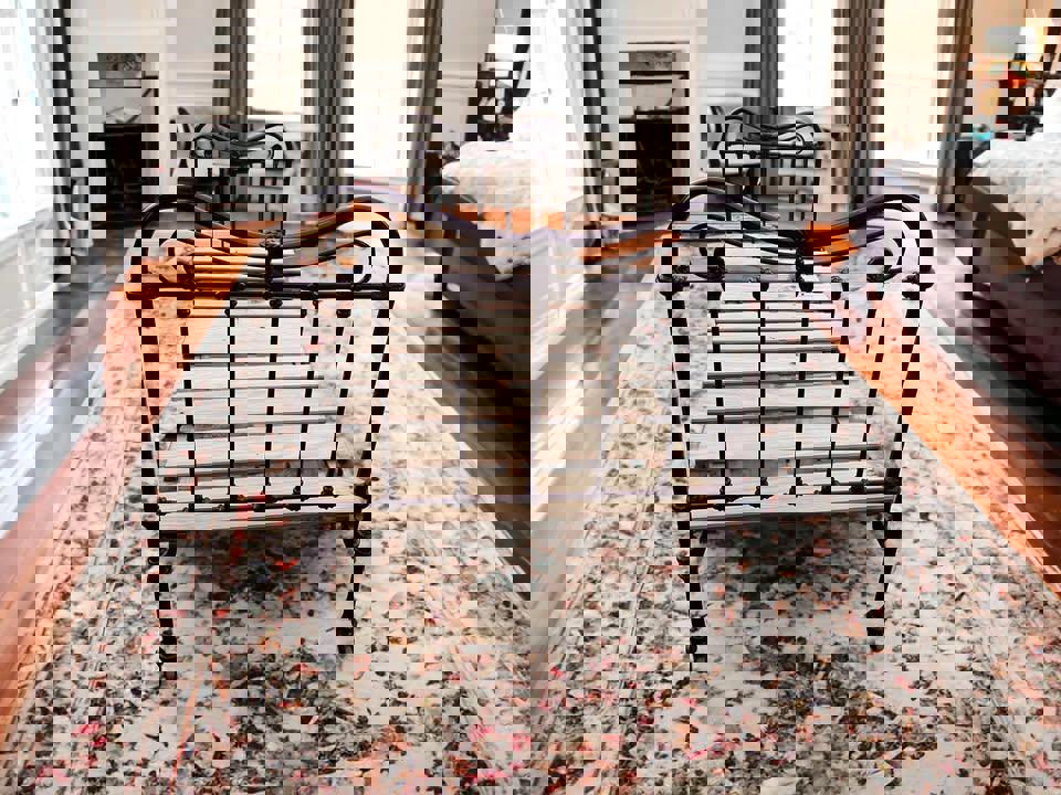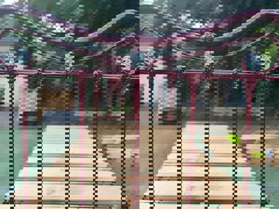 Antique steel single bed frame with wheels solid timber slats and