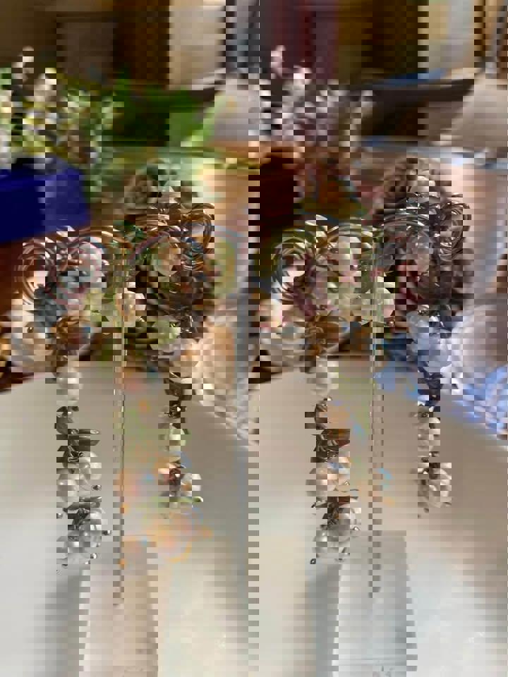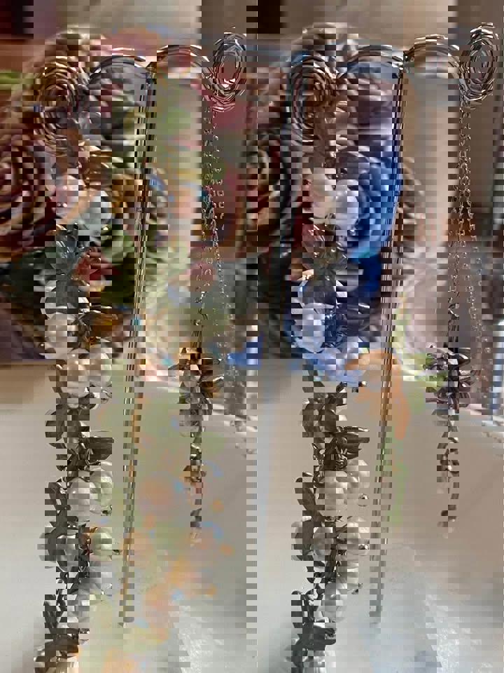 Handmade Women Lily Bell orchid Cultured Pearl Vintage Bracelets and matching pendent for Bridal.
