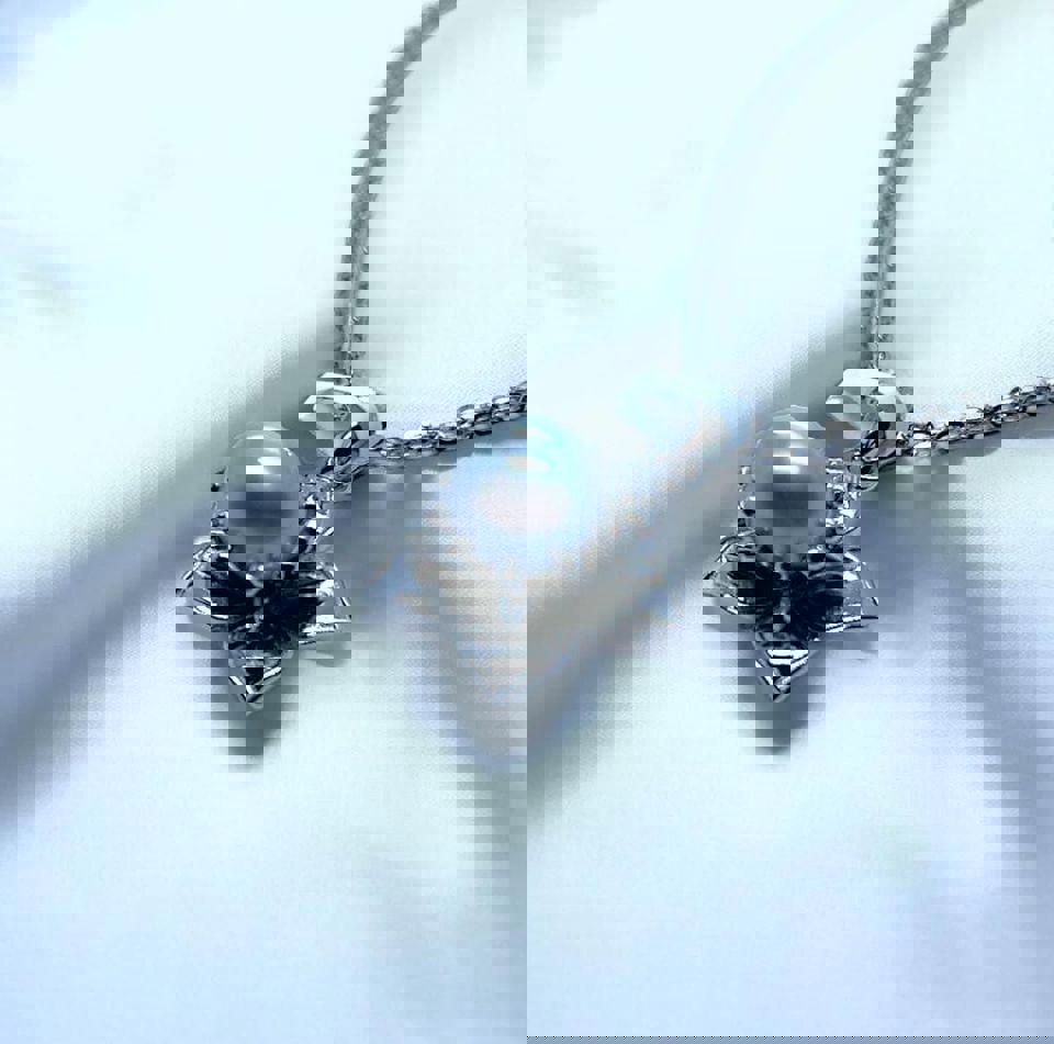 A beautiful seawater black pearl pendant, natural peacock white in color, smooth surface and very luster. The pearl is set on S925.