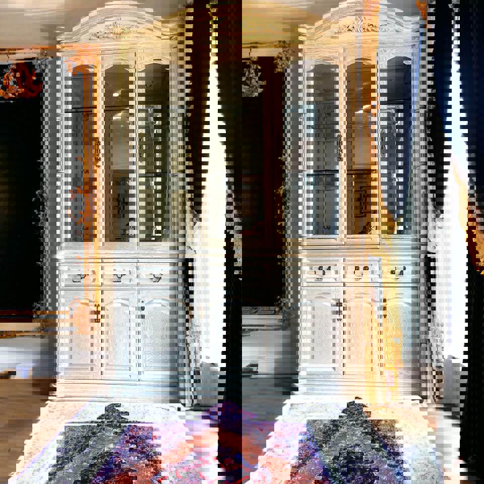 White antique style French cabinet tall boy chest of drawers full length mirror bedside tables